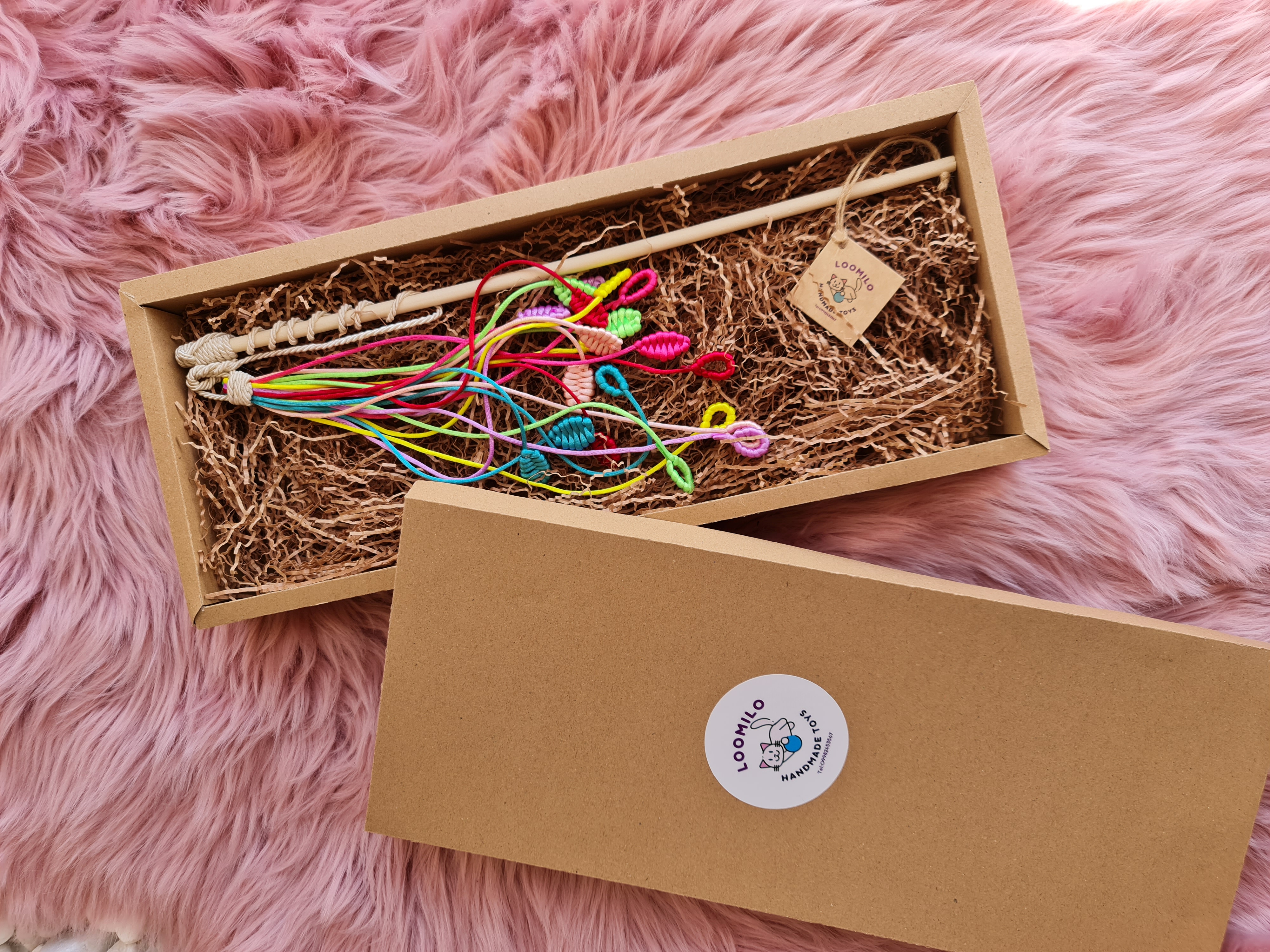 اسباب بازی متشکل از چوب و قیطان های رنگی
