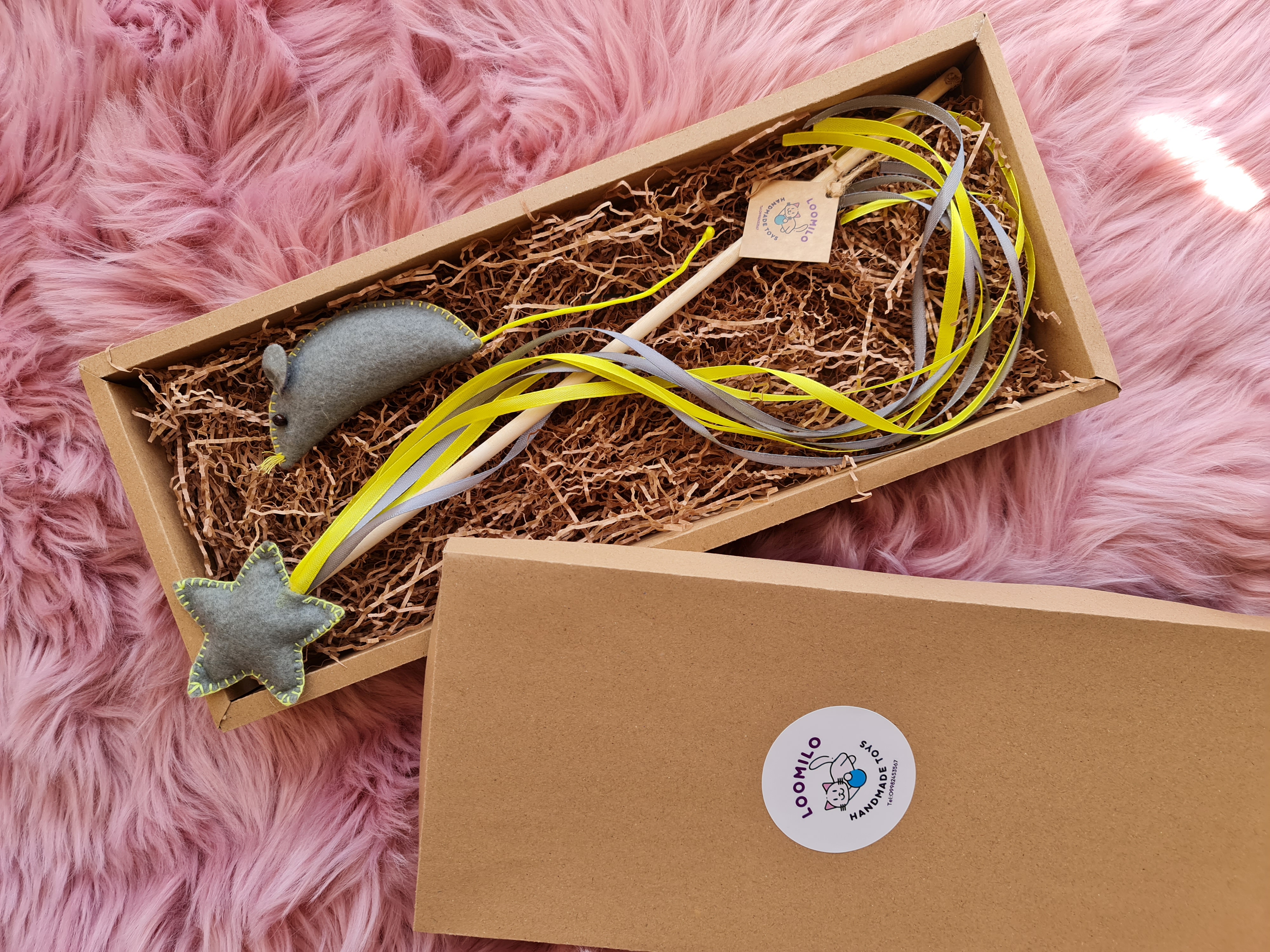 یک عدد چوب به طول ۴۰ سانتیمتر به همراه ستاره و روبان و یک عدد موش نمدی